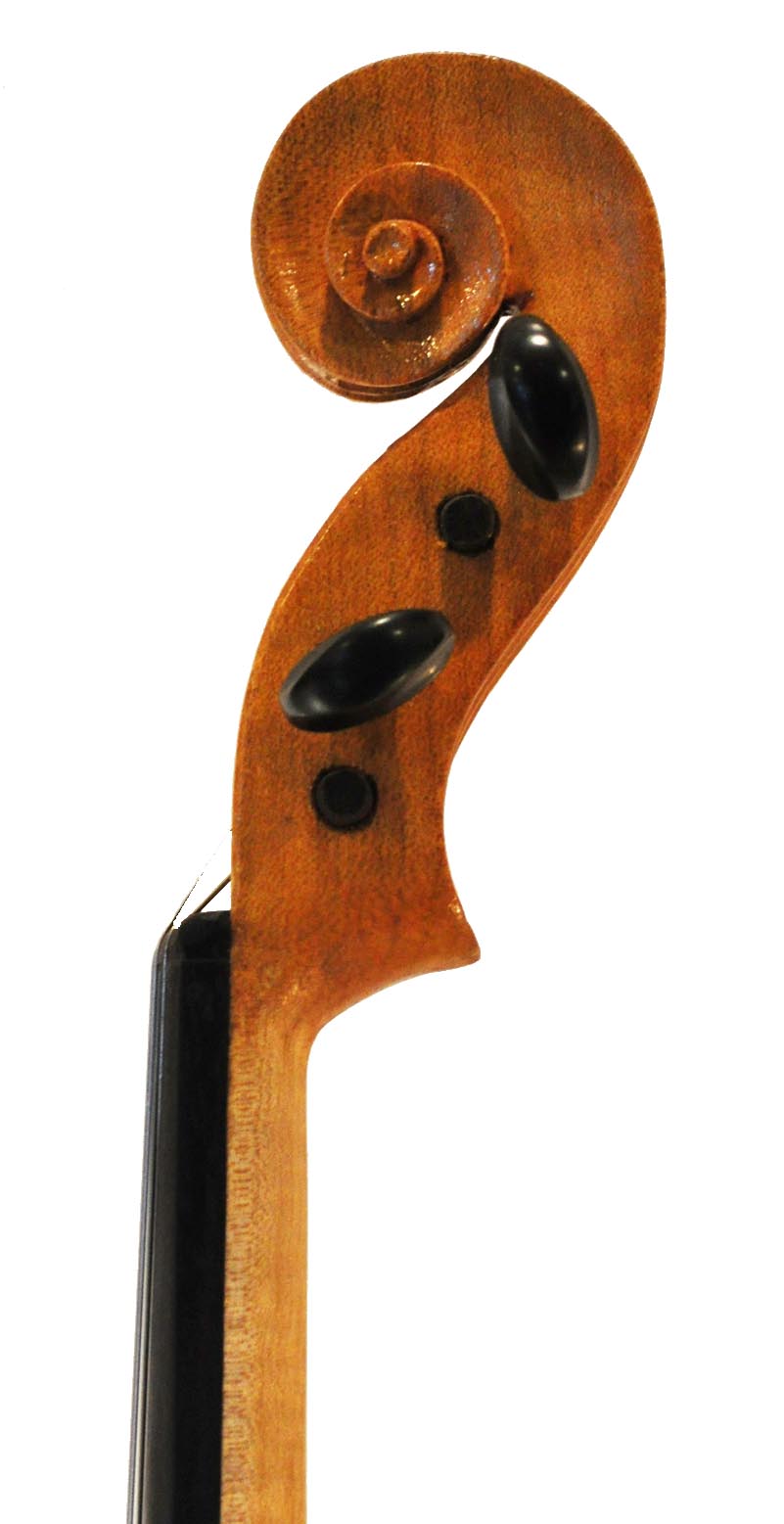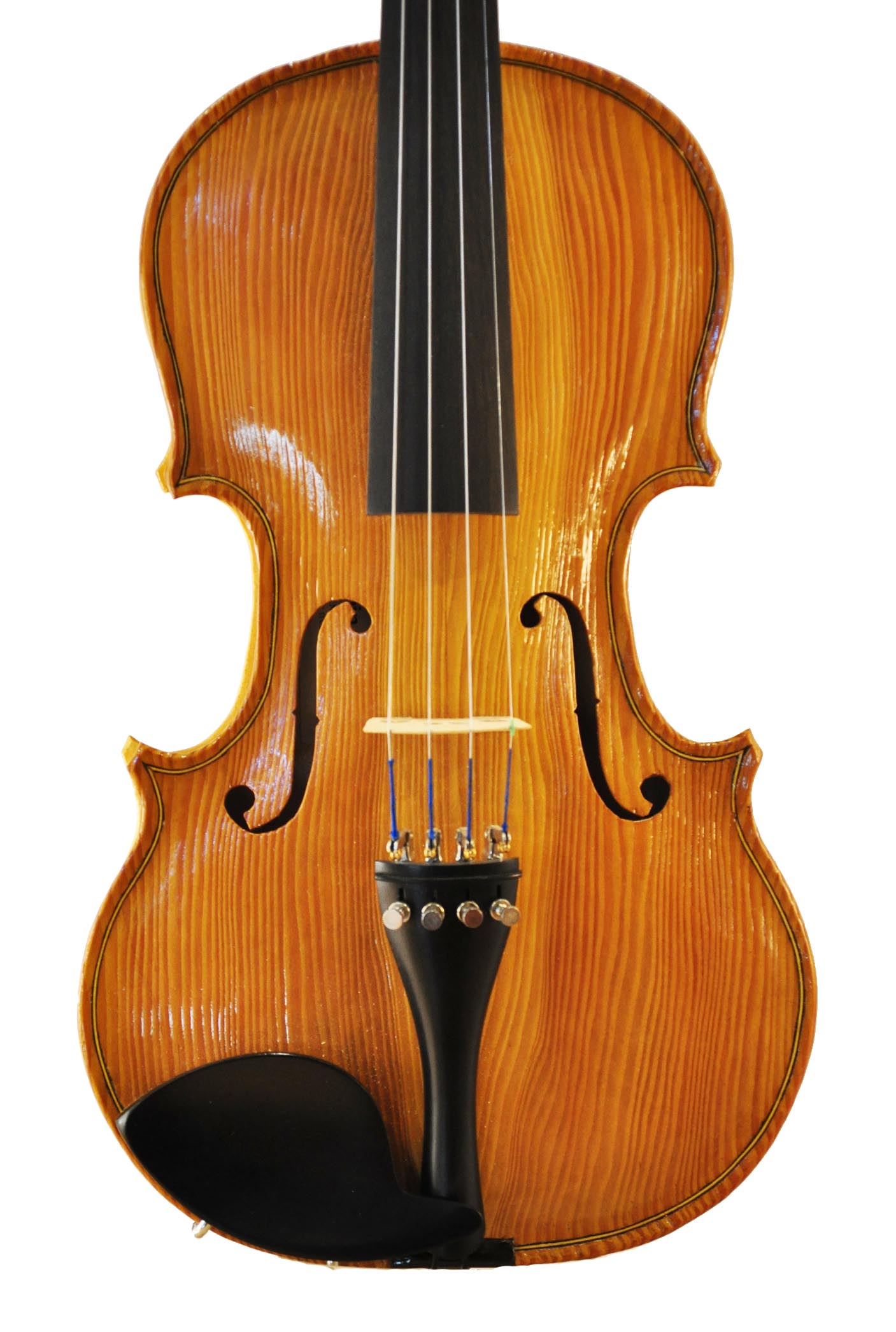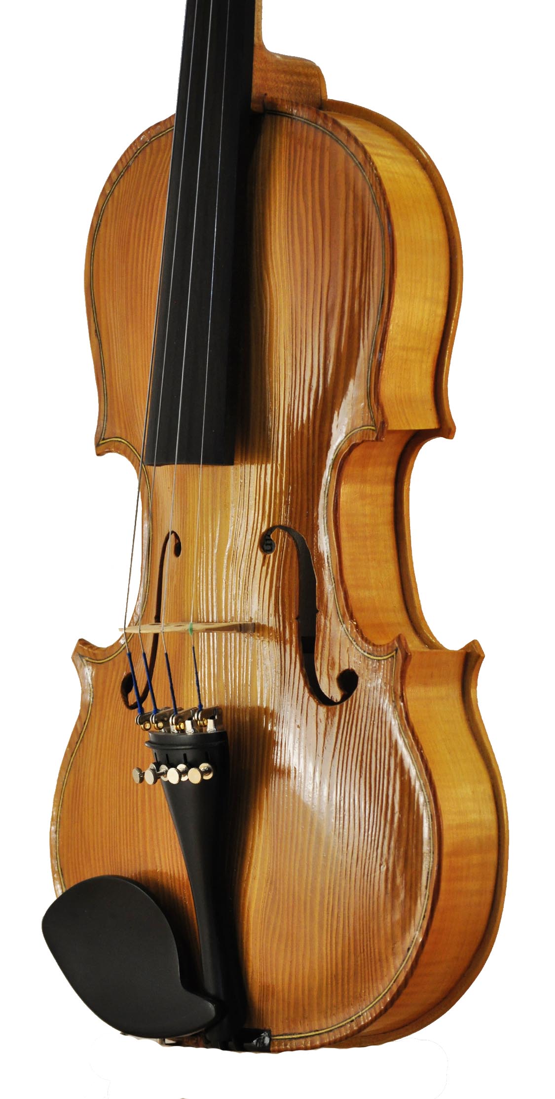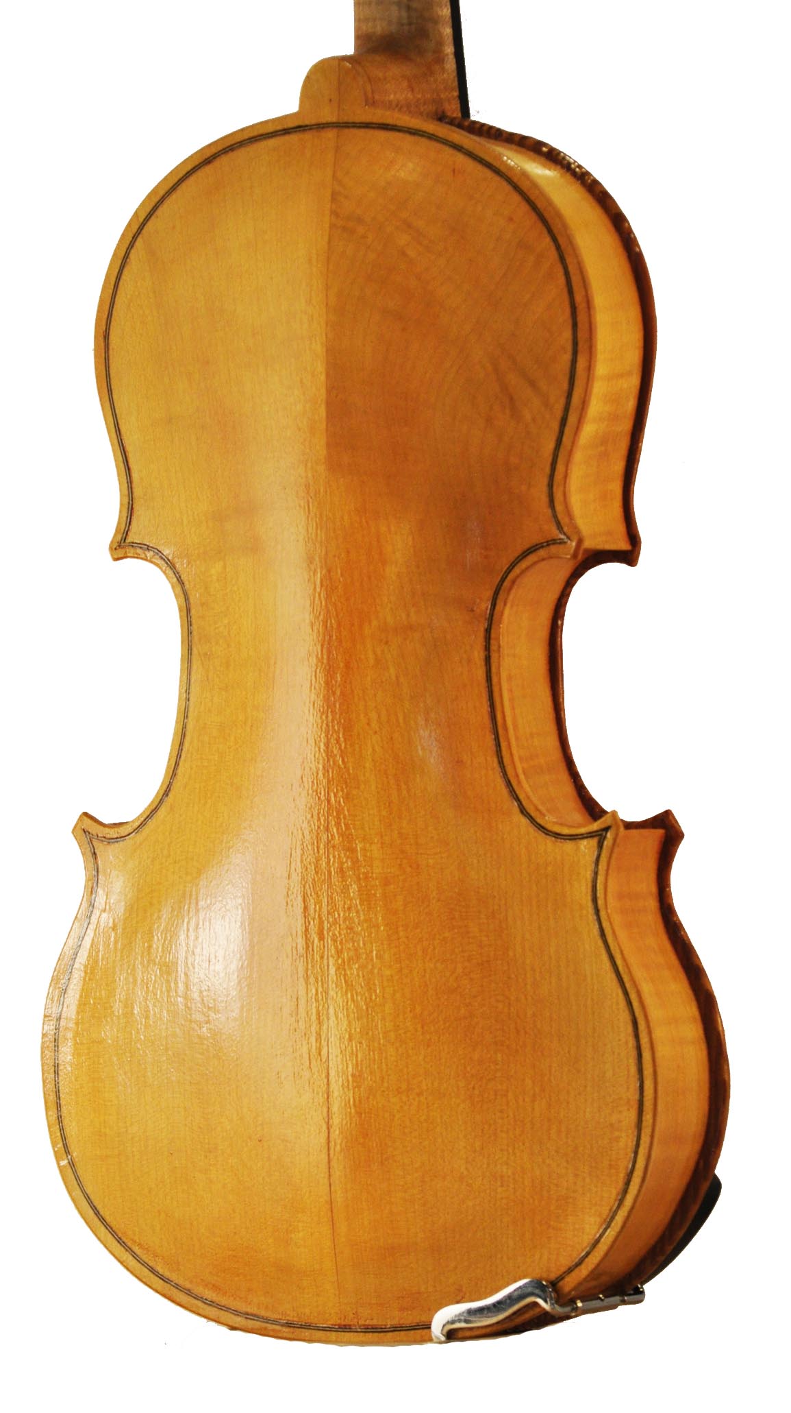 This was my first attempt at building a violin since violin-making school, 35 years earlier. Traditionally, the top plate of the violin body is made of spruce, but I messed up the only piece of spruce tone wood I had, so I tried again with a length of vertical grain Douglas Fir that was left over from a furniture project. Note the very wide grain. Or should I say, just try to ignore it. This top was very difficult to carve, especially since I had only one small gouge that wasn’t very sharp.