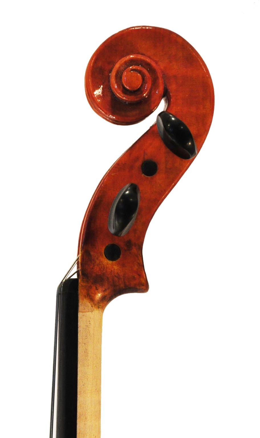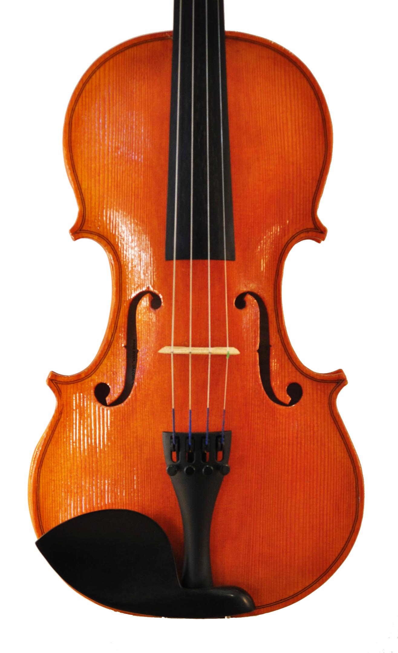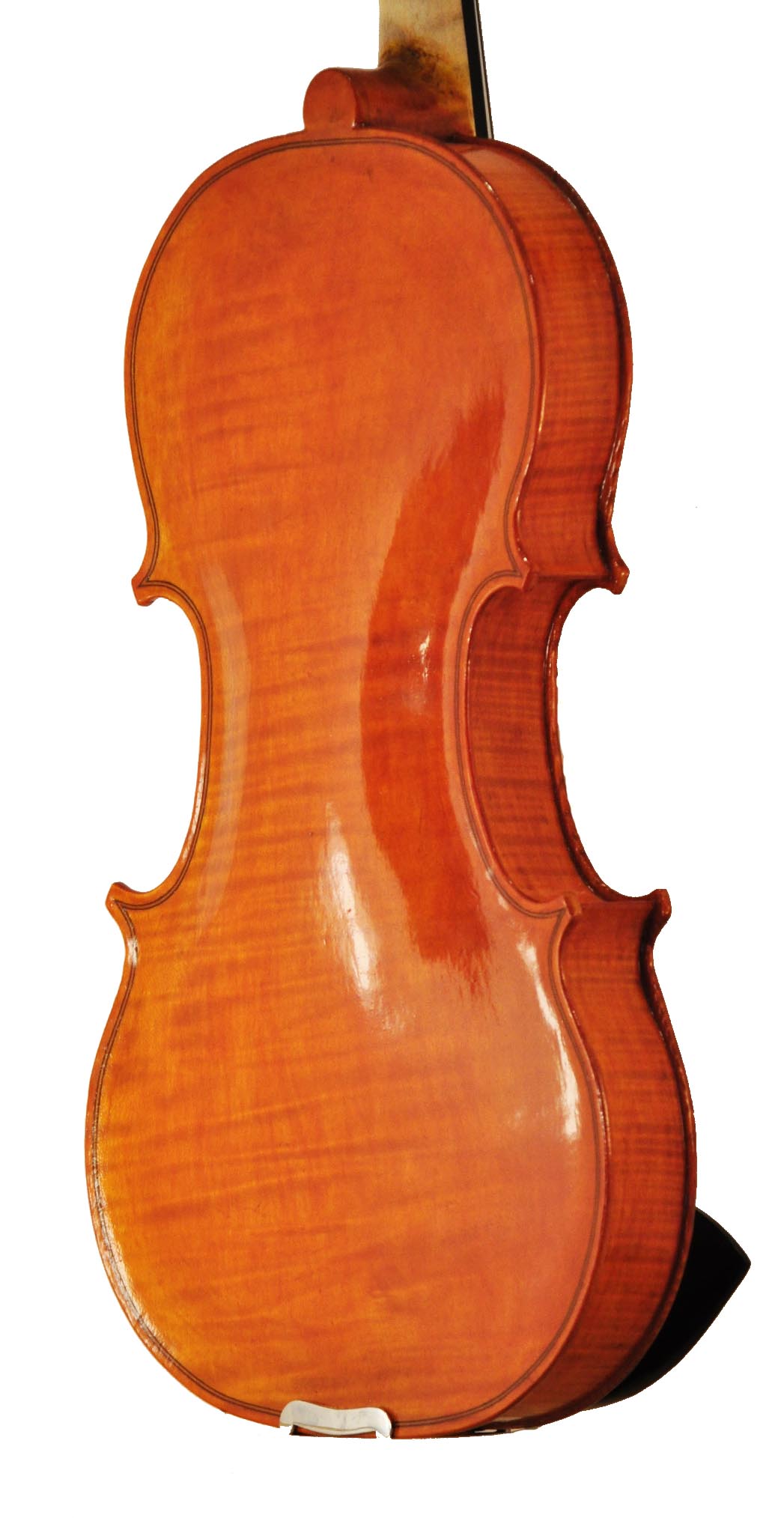 The purfling is the border of black and white lines around the perimeter of the violin top and back. It is made of thin wooden strips laminated together and inlayed just one to two millimeters into the wood. Purfling is both decorative and functional, as it helps prevent cracks from moving through the edge to the center of the violin. Examine the left lower corner of Excalibur and see how I carved right through the thin purfling, where I hadn’t inlaid it deep enough. Live and learn!